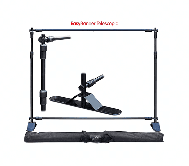 The Telescopic Banner by EasiDisplays is a highly flexible display solution designed for situations where fixed-size banners are too limiting. With adjustable width and height, the frame can be configured to suit a wide range of spaces, from compact indoor setups to large-format backdrops. The lightweight telescopic frame extends to accommodate displays up to approximately 2.5 metres wide and 2.4 metres high. This makes it suitable for exhibitions, events, retail environments, presentations, and temporary backdrops where adaptability is key. Assembly is quick and straightforward, using lightweight poles and hand-tightened screws rather than tools. The frame collapses down to a compact size for transport and storage, making it easy to move between venues or pack away when not in use. Graphics can be mounted using pole pockets or bungee cords, allowing the system to work with a variety of media types and finishes. Available in black or silver, the Telescopic Banner offers a practical and versatile solution for reusable indoor displays.
